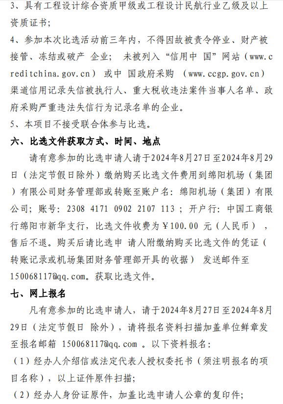 1. 綿陽機場 T1、T2 航站樓連接通道改造項目設(shè)計單位(第二次)比選公告